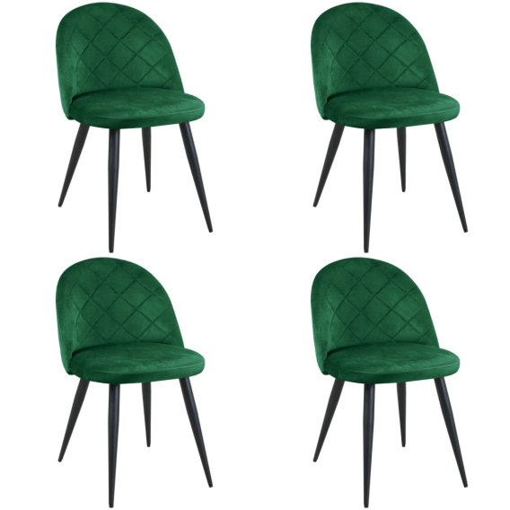Zestaw krzeseł welurowych znajdzie niejedno zastosowanie w nowoczesnych aranżacjach. Świetnie zda egzamin w roli krzeseł do jadalni, biura, jak również do salonu kosmetycznego czy fryzjerskiego. Produkt posiada obicie z miękkiej tkaniny welurowej, zaokrąglone oparcie ozdobione pikowanym przeszyciem oraz metalowe nogi w czarnym kolorze.