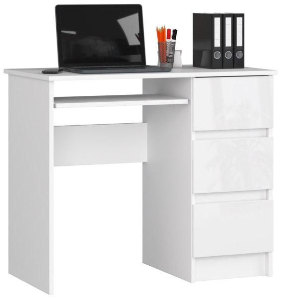 Na biurko składa się blat o długości 90 centymetrów, trzy szuflady oraz wysuwana półka na klawiaturę.