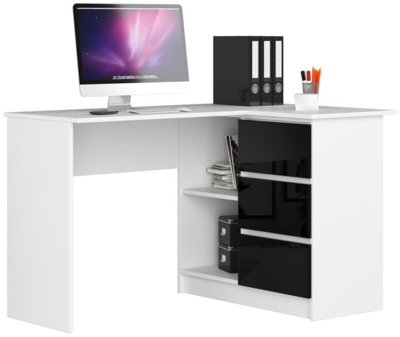 Dla graczy, uczniów poszukujących miejsca do nauki oraz dorosłych pracujących zdalnie, polecane jest wygodne biurko komputerowe z trzema szufladami. Konstrukcja mebla została przygotowana z płyty laminowanej o grubości 16mm która jest bardzo odporna na ścieranie. Fronty drzwiowe zostały przygotowane w technologii akryl, co oznacza, że posiadają najwyższy standard połysku spośród podobnych mebli. Ze względu na dopasowane rozmiary, biurko posiada sporą pojemność do przechowywania dodatkowych akcesoriów. Systemy szuflad zostały zamontowane na metalowych prowadnicach rolkowych, które nie ulegają zacinaniu się podczas pracy. Dodatkowo, krawędzie biurka zostały zabezpieczone obrzeżem ABS, które zwiększa ich wytrzymałość i odporność na mechaniczne uszkodzenia. Producent udostępnia meble w wersji do samodzielnego złożenia przez klienta, dodatkowo do zamówionego towaru dostarczana jest przejrzysta instrukcja montażu. Okres gwarancji na zamówione biurko narożne wynosi 24 miesiące od czasu zakupu.