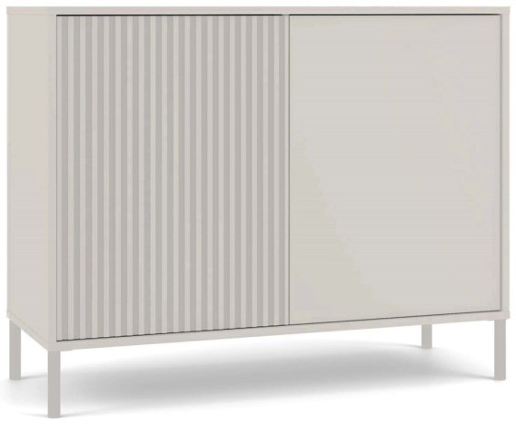 Komoda KAMARO 2D SLIM/GŁADKI KASZMIR to połączenie estetyki i funkcjonalności, które doskonale odnajdzie się w salonie, pokoju gościnnym, sypialni czy gabinecie. Dzięki połączeniu gładkiego frontu z ryflowanym (przypominającym lamele), mebel zyskuje nowoczesny i oryginalny wygląd, idealnie pasujący do współczesnych wnętrz.
