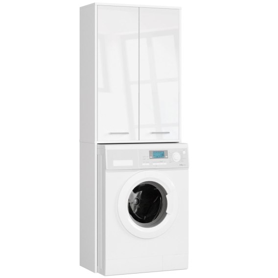 Chcąc, aby nasza łazienka był urządzona komfortowo, a zarazem stylowo, powinniśmy postawić na solidnie oraz funkcjonalnie wykonane meble. Takim z pewnością jest szafka nad pralkę. To idealny sposób na zagospodarowanie miejsca nad pralką, które zazwyczaj pozostaje niewykorzystane. Optymalne wymiary tego słupka sprawiają też, że jest świetnym rozwiązaniem do łazienek o małym metrażu. Ergonomiczny kształt umożliwia jego wykorzystania w każdym pomieszczeniu. Mebel ten składający się z nadstawki nad pralkę i znajdującej się nad nimi szafki tworzy sporą ilość miejsca do przechowywania różnego typu przedmiotów. W szafce schowamy artykuły takie jak detergenty czy środki higieniczne. Półki te są stworzone do przechowywania osobistych kosmetyków lub ręczników. Piękny odcień jakim jest biały z frontami biały połysk gwarantuje nam elegancki wystrój łazienki. Płyta laminowana, z której została wykonana ta szafka, to wysokogatunkowe tworzywo. Zapewnia ono trwałość i solidność mebla, a także zachowanie jego estetycznego wyglądu.