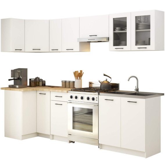 MEBLE KUCHENNE ZESTAW NAROŻNY Z WITRYNĄ OLIWIA 3M BIAŁY