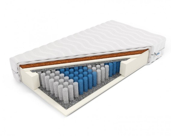- Materiały: Sprężyny pocket, pianka poliuretanowa, mata kokosowa