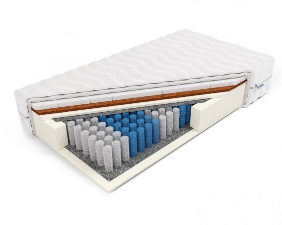 - Materiały: Sprężyny pocket, pianka FlexyLateks 4 cm, kokos lateksowany 2 cm, pianka ComfortBase