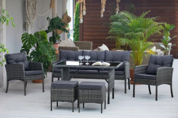 Zestaw mebli ogrodowych TAJLO w kolorze ciemnoszarym to nowoczesne rozwiązanie do każdego ogrodu. Charakteryzuje się wytrzymałą konstrukcją oraz uniwersalnym wyglądem.