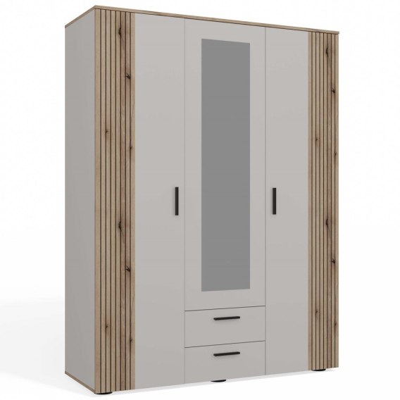 SZAFA AVA 150 CM LUSTRO 2 SZUFLADY RYFLOWANY FRONT DĄB EVOKE KASZMIR BEŻ