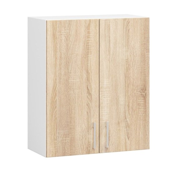Funkcjonalne meble, w tym pojemne szafki kuchenne stojące, wiszące i narożne, to kluczowy element wyposażenia każdej kuchni. Wykorzystuje się je do przechowywania różnego typu akcesoriów kuchennych, zastawy stołowej oraz małego AGD, w tym mikserów czy malakserów. Szafka kuchenna wisząca stanowi idealne rozwiązanie we wszystkich kuchniach, a w szczególności tych o małej powierzchni, w których ważne jest zagospodarowanie każdego miejsca. Szafka kuchenna wisząca W60 D2 LIMA jako mebel pojemny, wygodny w użytkowaniu i jednocześnie efektowny spełni oczekiwania wymagającej pani domu. Szafka została wykonana z trwałej oraz odpornej na ścieranie i zarysowania płyty laminowanej. Estetyczny front w kolorze Dąb Sonoma z dekorem imitującym strukturę naturalnego drewna czyni z niej mebel uniwersalny, doskonale pasujący do każdego koloru ścian w kuchni, oraz komponujący się z aranżacją wnętrza klasyczną lub nowoczesną. Obrzeża z okleiny ABS oraz designerskie metalowe uchwyty nadają jej wyjątkowo elegancki charakter.