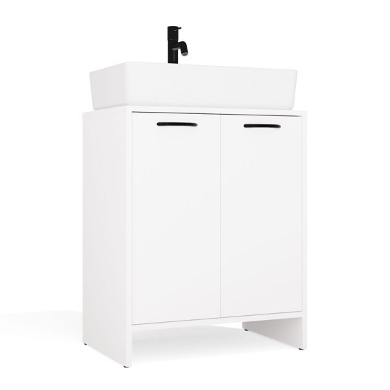 Dwoje drzwi – kryją praktyczne wnętrze z 2 półkami na środki czystości, kosmetyki lub inne akcesoria