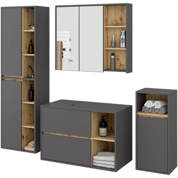 ZESTAW MEBLI ŁAZIENKOWYCH WISZĄCYCH Z OTWORAMI VAMI GRAFIT SZARY / DĄB ARTISAN